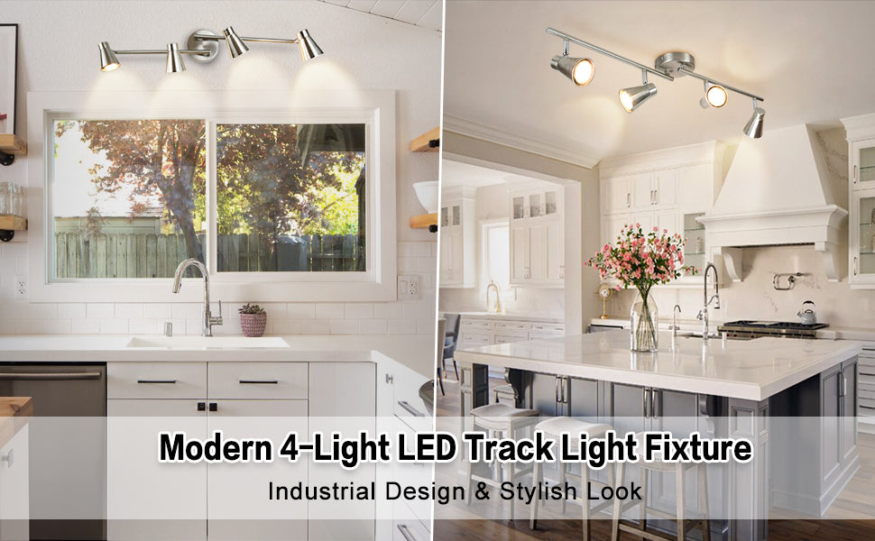 1. adjustable Flexible: Two swing arms with adjustable lights allow you to aim light where you need it most. Arm fully can be rotated 360 degrees, 4 track heads can be rotated 330? horizontally and 90? vertically. Flexibility in how you want the lights to shine with extending and swiveling as needed.
