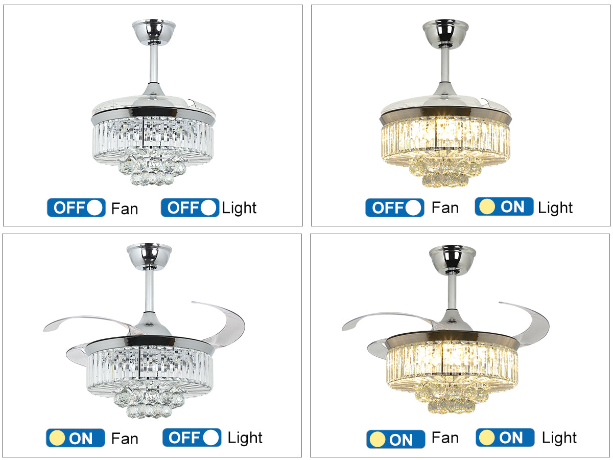 But now the upside - it looks stunning and excellent value. It looks so much more expensive and we've been very impressed with the overall quality. It's very elegant. The light shimmer and reflections are really pretty. The light is bright so we prefer the warm light setting. The fan is very good and very quiet on the lower settings. Very pleased with our purchase.