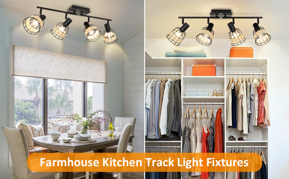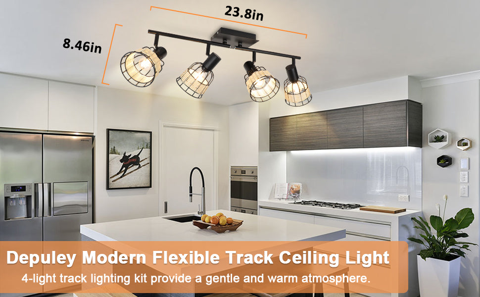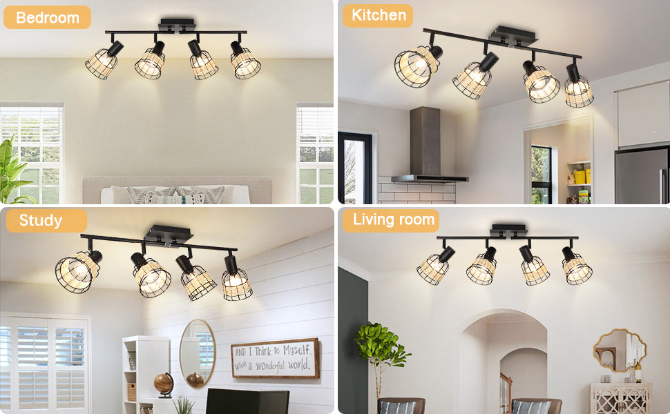 1. Unique: The wall spotlight with metal & rattan cage provides warm lights. The Track Lighting fixture combined with modern and pastoral style adds a touch of softness to your home.