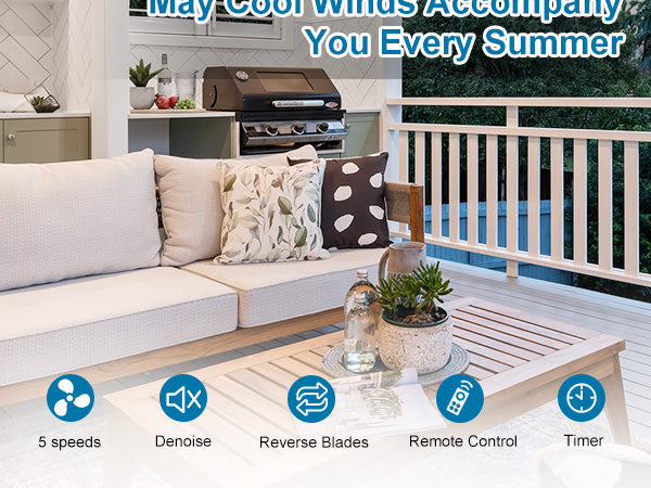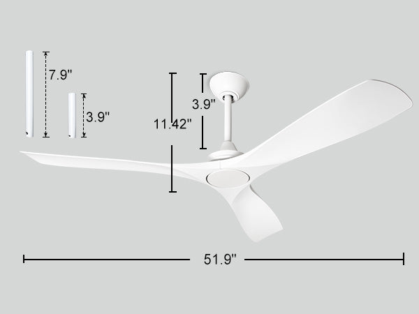 | Special Features | Reversible DC silent motor, 1/2/4/8H Timer, 5 Speeds, 3 Color Temperature, Air Circulation, Memory, 3.9"/7.9" Downrods Adjustable Mounting Height, Memory |